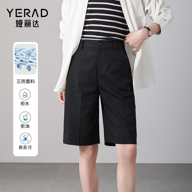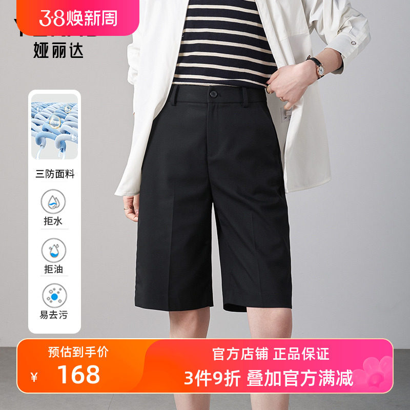 娅丽达三防西装短裤女春季新款高腰裤子宽松中裤黑色五分裤直筒裤