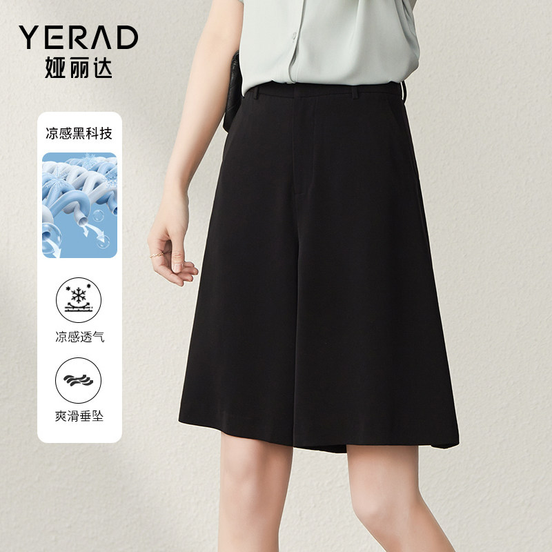 娅丽达女裤冰丝短裤女西装阔腿裤夏季薄款黑色裤子休闲中裤五分裤