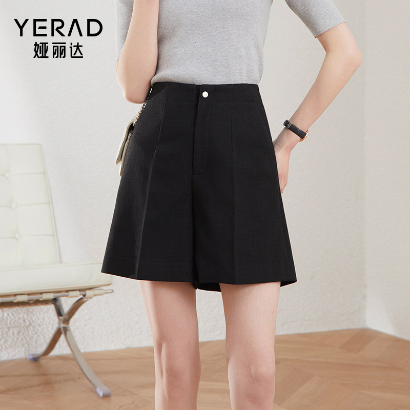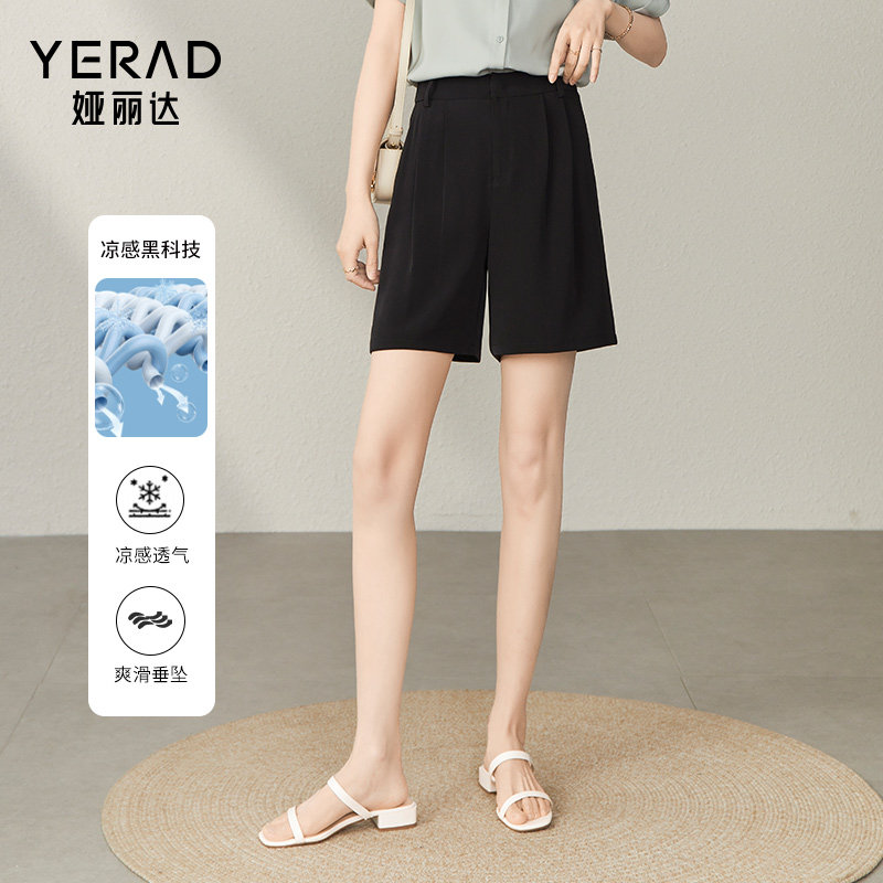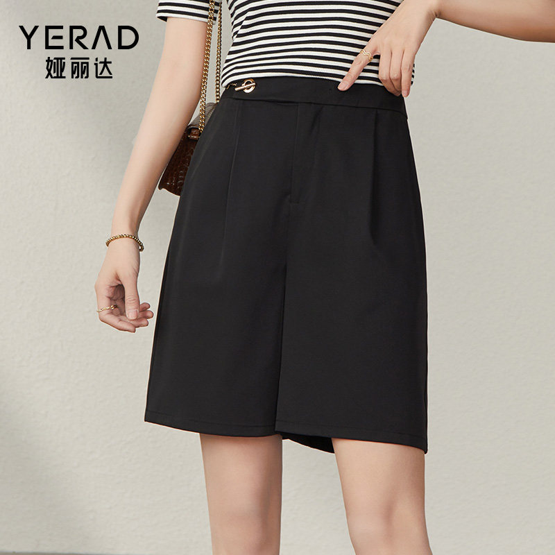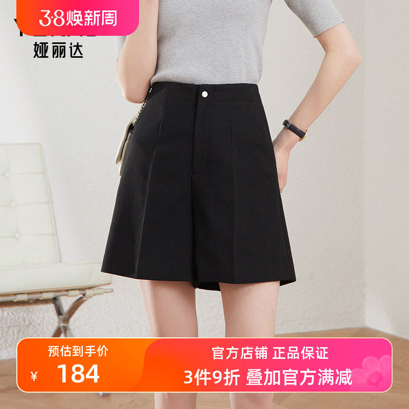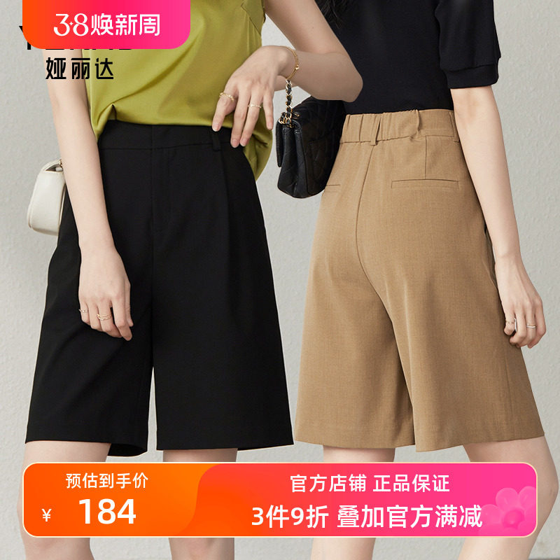 娅丽达高腰西装短裤黑色五分裤夏季新款女裤休闲直筒裤A字阔腿裤