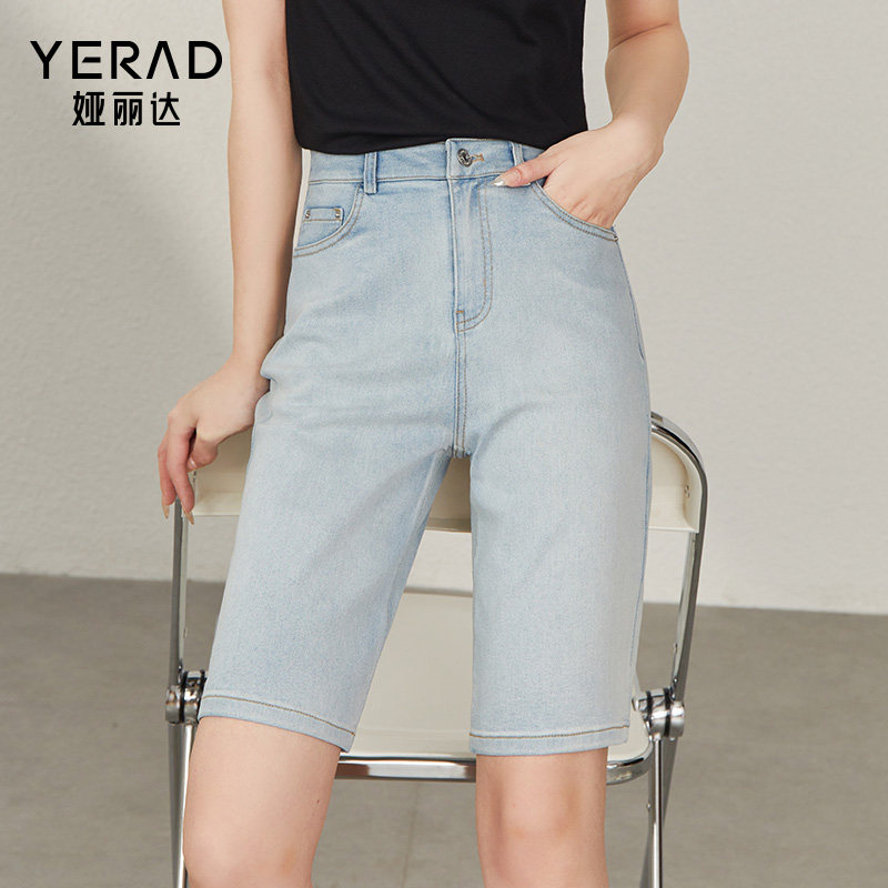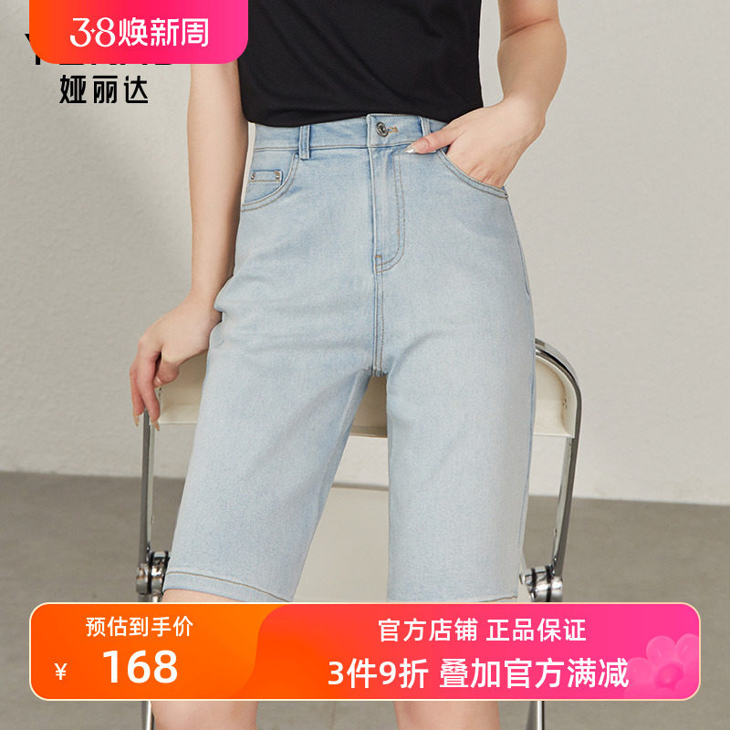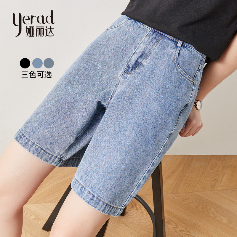 娅丽达女裤高腰牛仔短裤高腰中裤2023夏季新款裤子宽松直筒五分裤