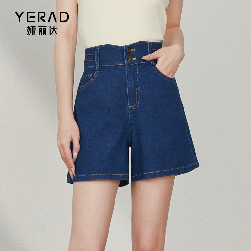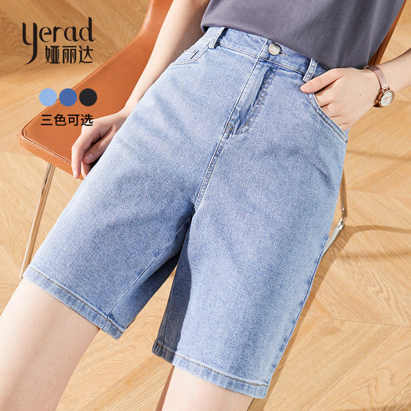 娅丽达高腰牛仔短裤女2023年夏季时尚显瘦宽松直筒高腰a字三分裤