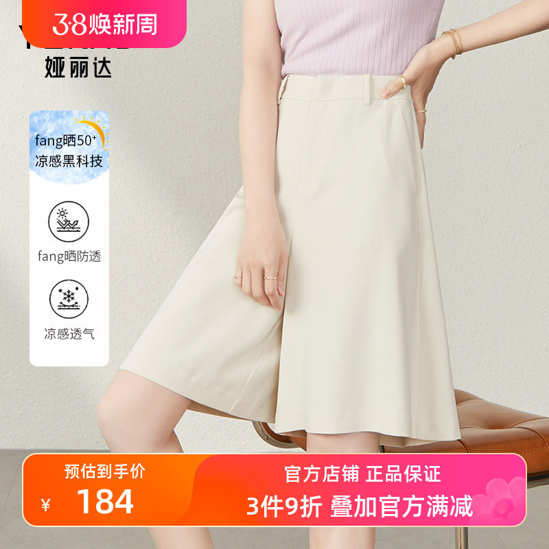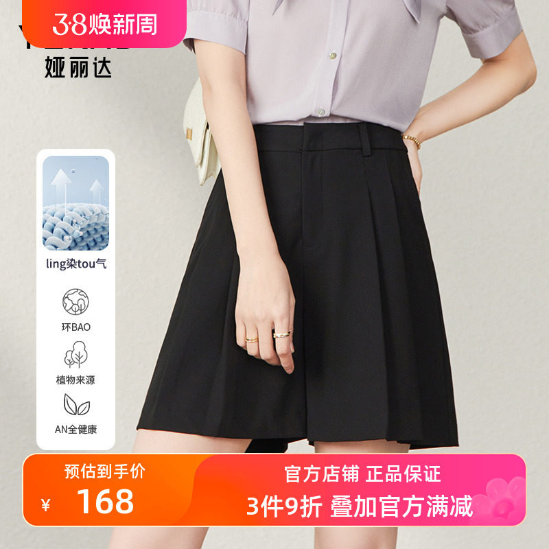 娅丽达女裤A字短裤女阔腿裤2024春新款裤子黑色五分裤时尚直筒裤