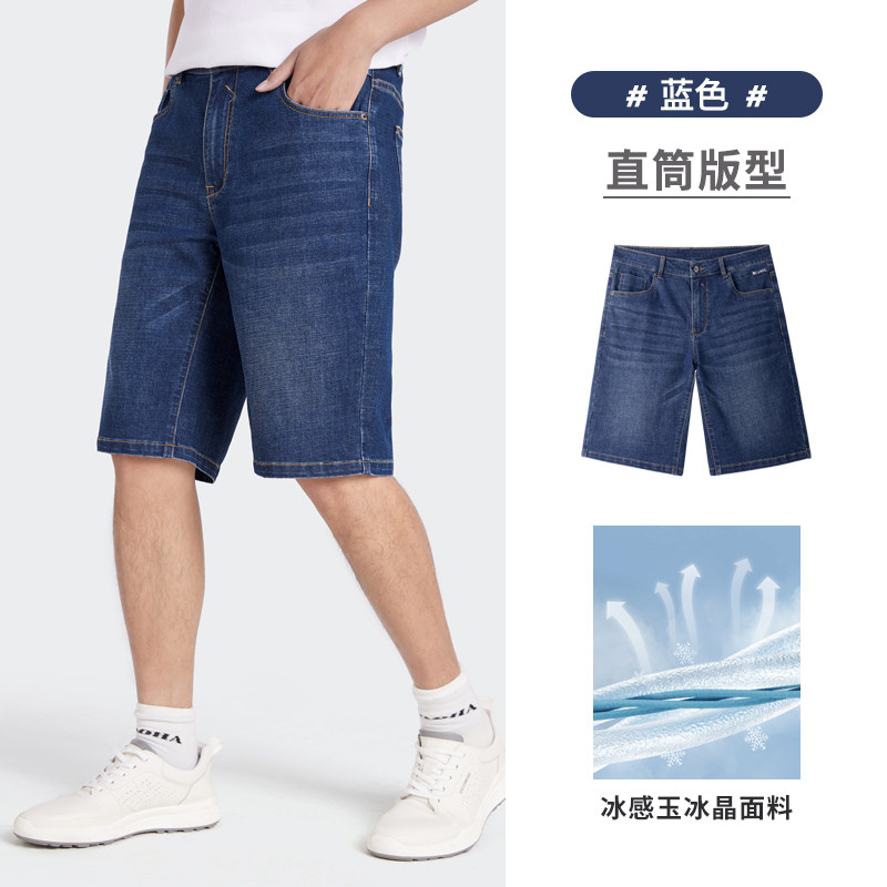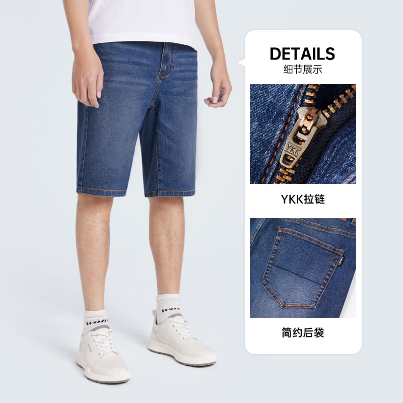 Camel/骆驼23春夏新款男士吸湿透气微弹洗水纽扣直筒五分牛仔短裤