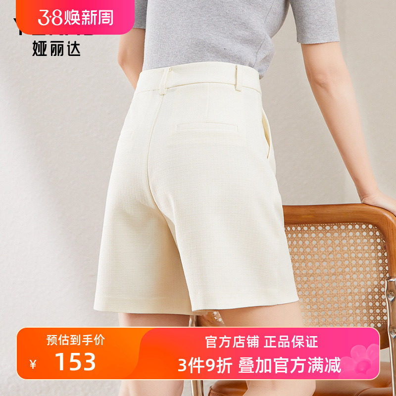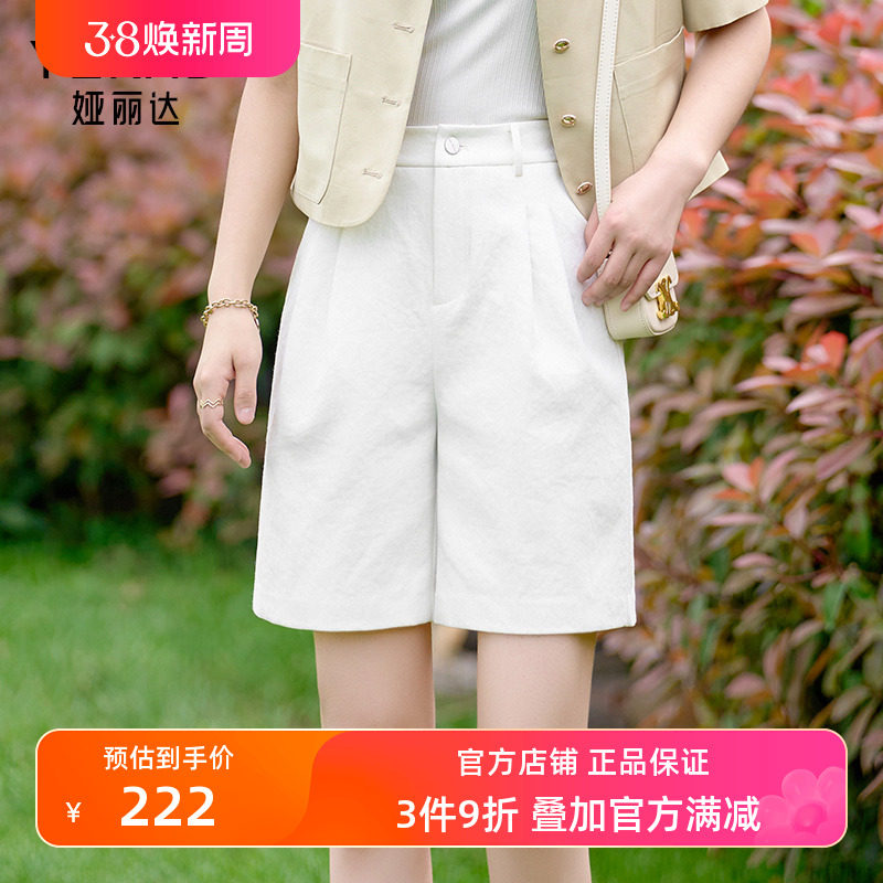 娅丽达白色短裤夏女气质休闲中裤美式裤子2023新款薄款西装五分裤