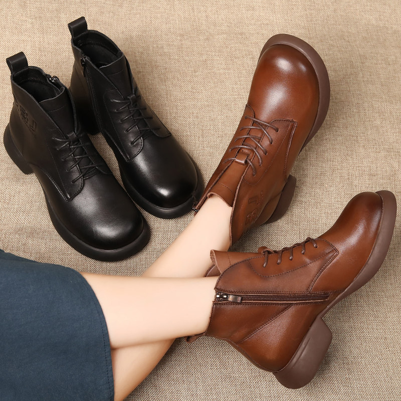秋冬妈妈棉鞋真皮短靴舒适软底女鞋中老年防滑靴子牛筋底老人短靴