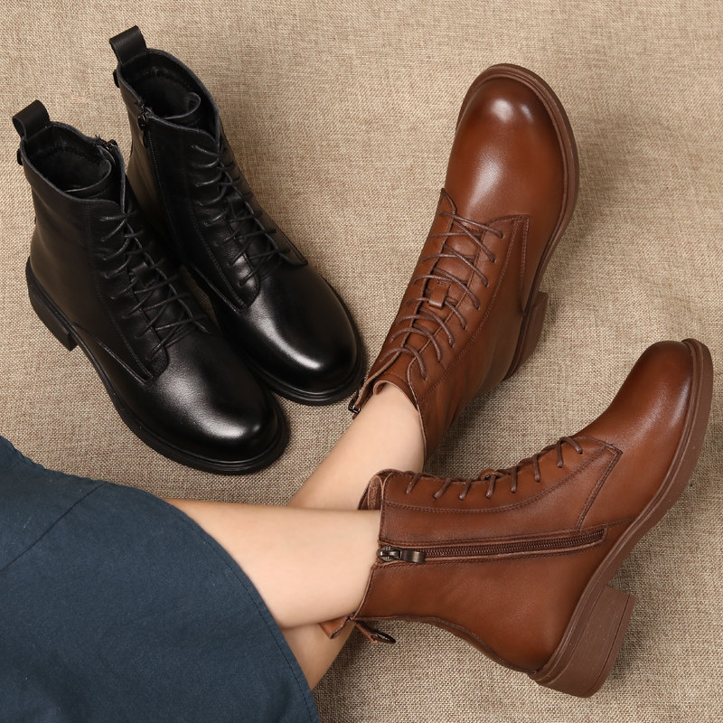 中老年靴子加绒短靴秋冬季新款真皮女靴羊毛妈妈鞋棉鞋软底单靴女