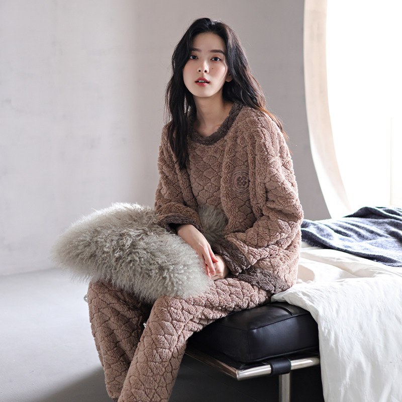 婷美女珊瑚绒暖和保暖冬季加绒加厚牛奶绒睡衣套装舒适宽松家居服