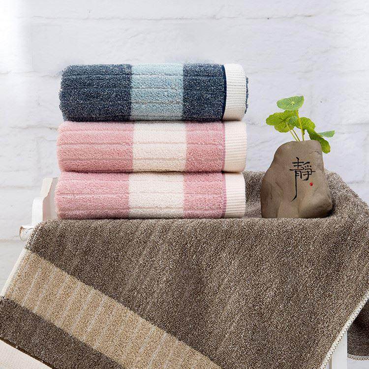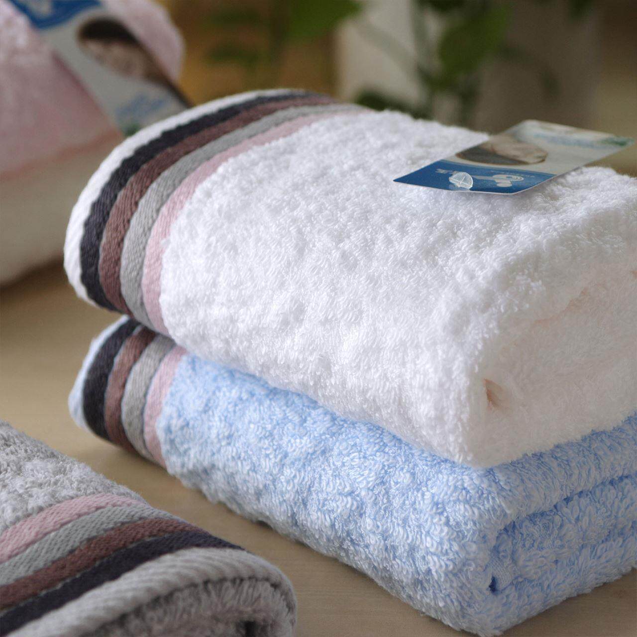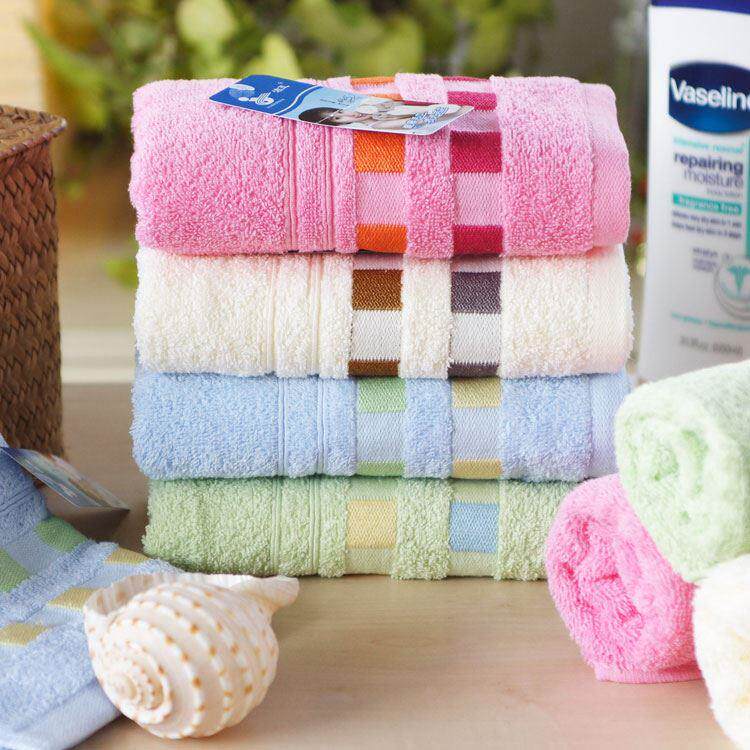 孚日洁玉纯棉家用成人洗脸巾柔软吸水清新条纹大毛巾J1022擦头巾