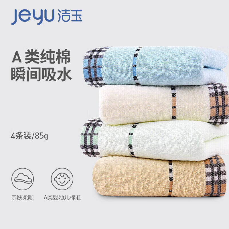 创京鑫选2022款洁玉毛巾4/0条孚日洁玉家用柔软儿童洗脸毛巾吸水