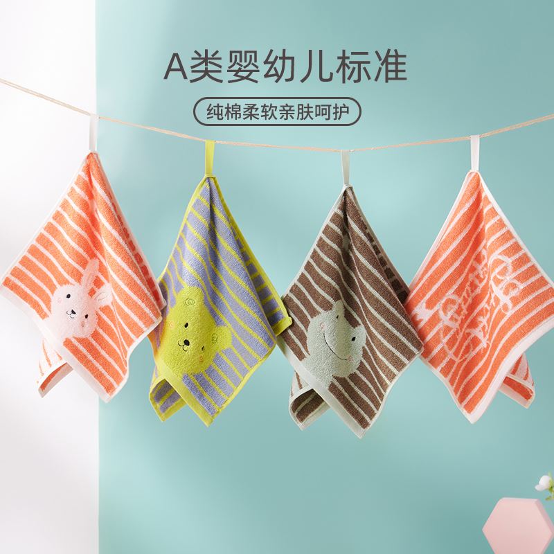 孚日洁玉儿童毛巾纯棉方巾洗脸可挂面巾柔软家用洗澡吸水不易掉毛