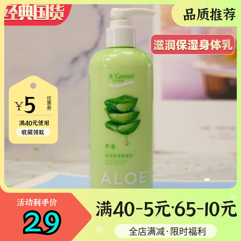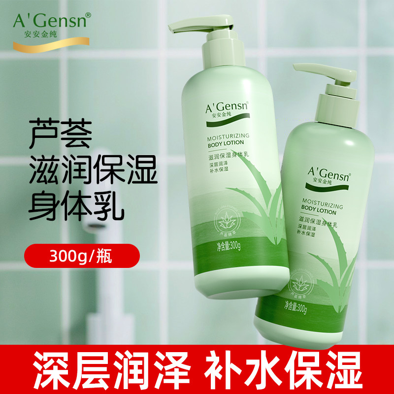 安安金纯官网正品芦荟身体乳女持久留香保湿滋润补水舒缓