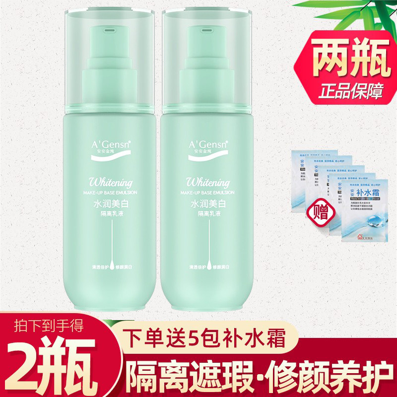 2瓶安安金纯水凝美白隔离乳液女妆前乳遮瑕保湿打底面霜 安安正品