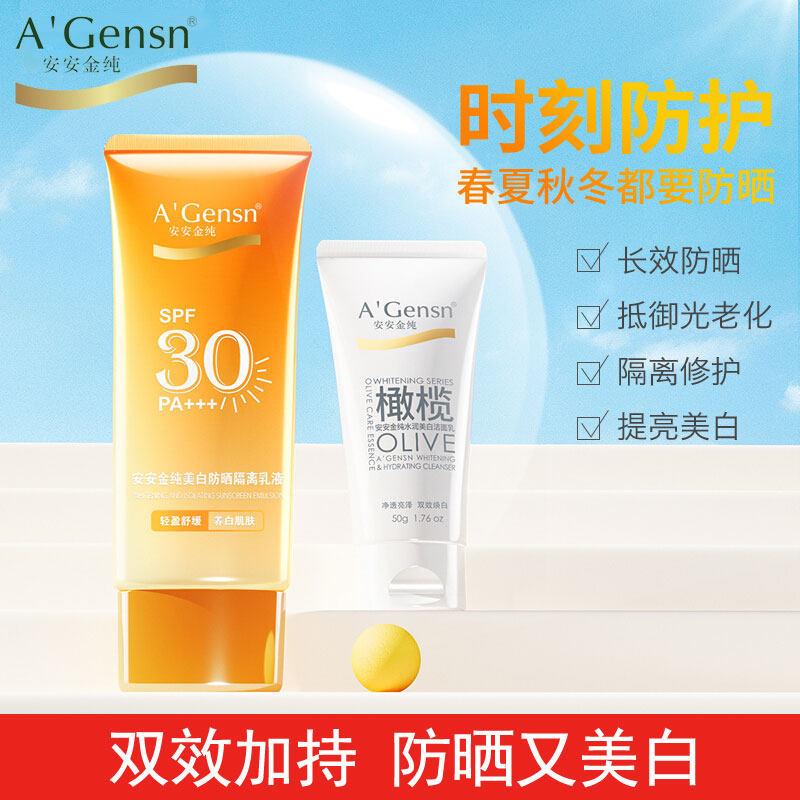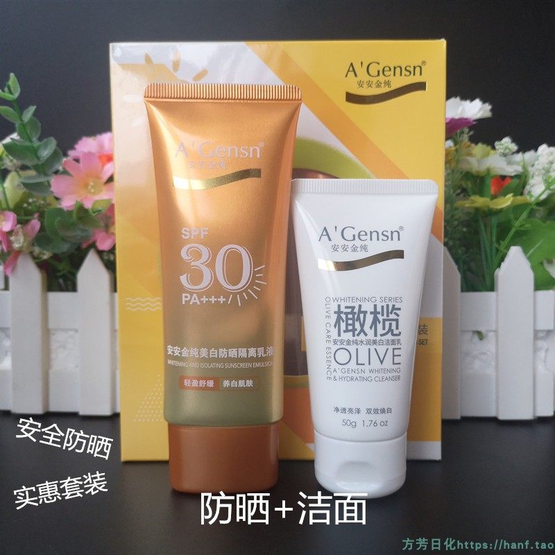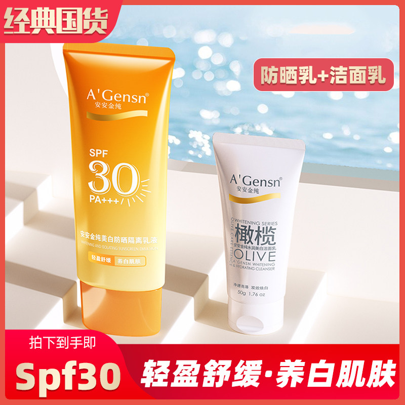 安安金纯防晒霜正品脸面部防紫外线隔离美白防晒乳液套装送洁面乳