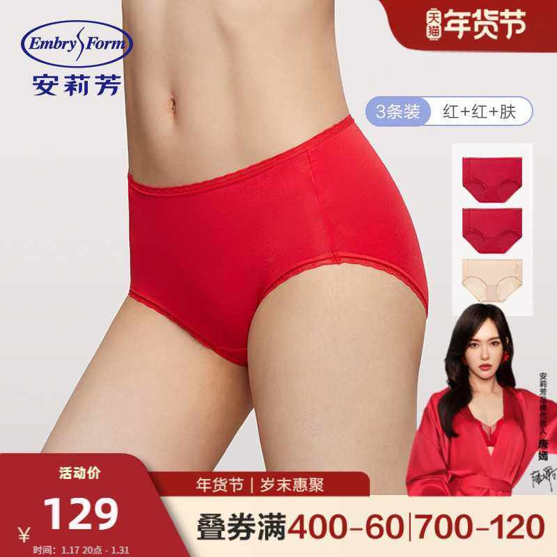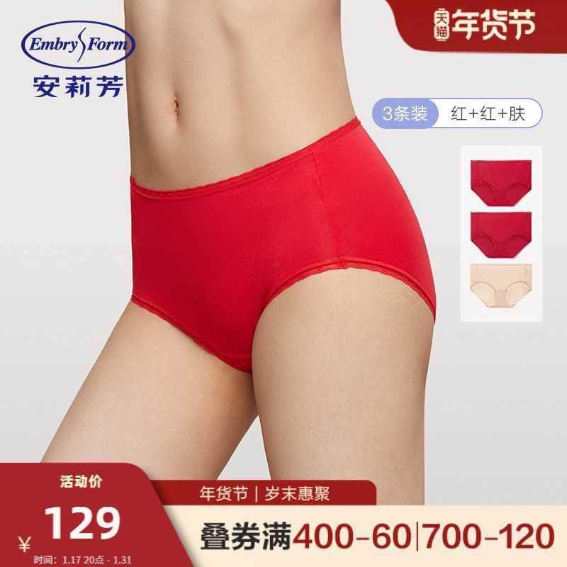 【3条装】安莉芳中腰三角裤舒适包臀女抗菌本命年红色内裤EPW0232