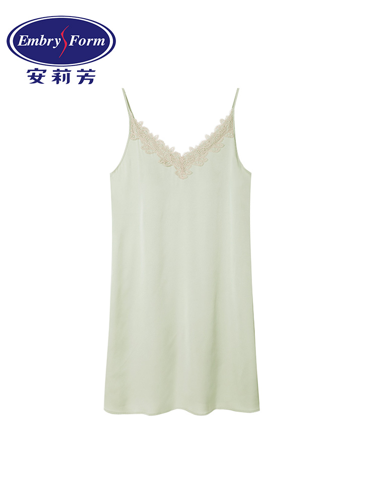 安莉芳薄款性感蕾丝深V吊带睡裙女士舒适短款带杯垫家居裙EL00451