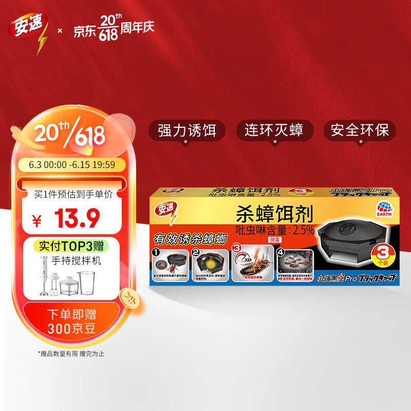 安速蟑螂药杀蟑饵剂灭蟑全窝端小强黑克Pro升级款3枚装