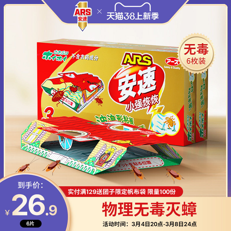 日本安速蟑螂屋小强恢恢捕捉贴强力粘6片驱灭蟑螂药家用厨房无毒