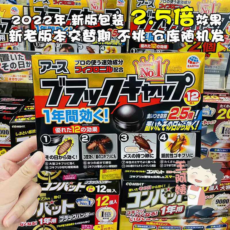 包邮日本原装安速小黑帽环保安全灭蟑螂药无味除小强小黑屋 12枚