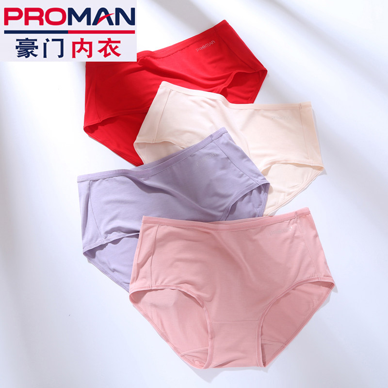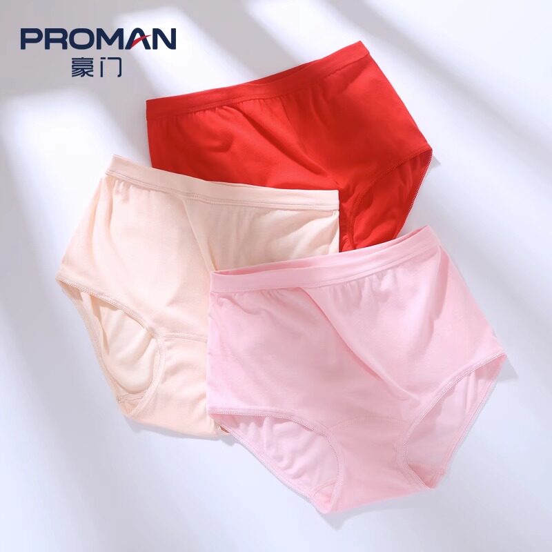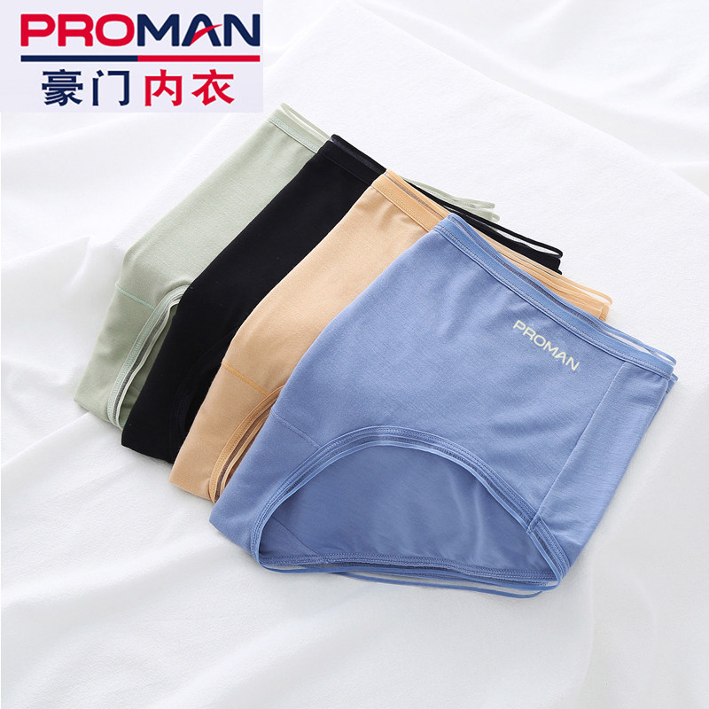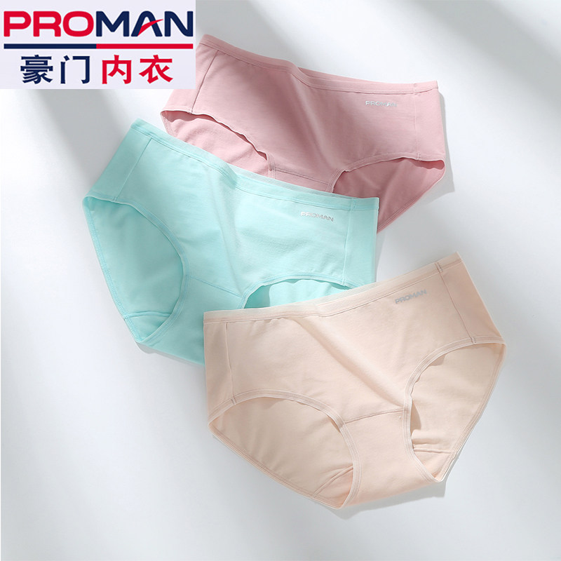 PROMAN豪门女士精梳棉薄款透气中腰三角内裤抗菌凉爽纯色短裤夏季