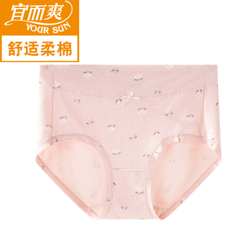 宜而爽女士内裤女纯棉全棉裆中腰无痕女生少女式三角短裤夏季薄款