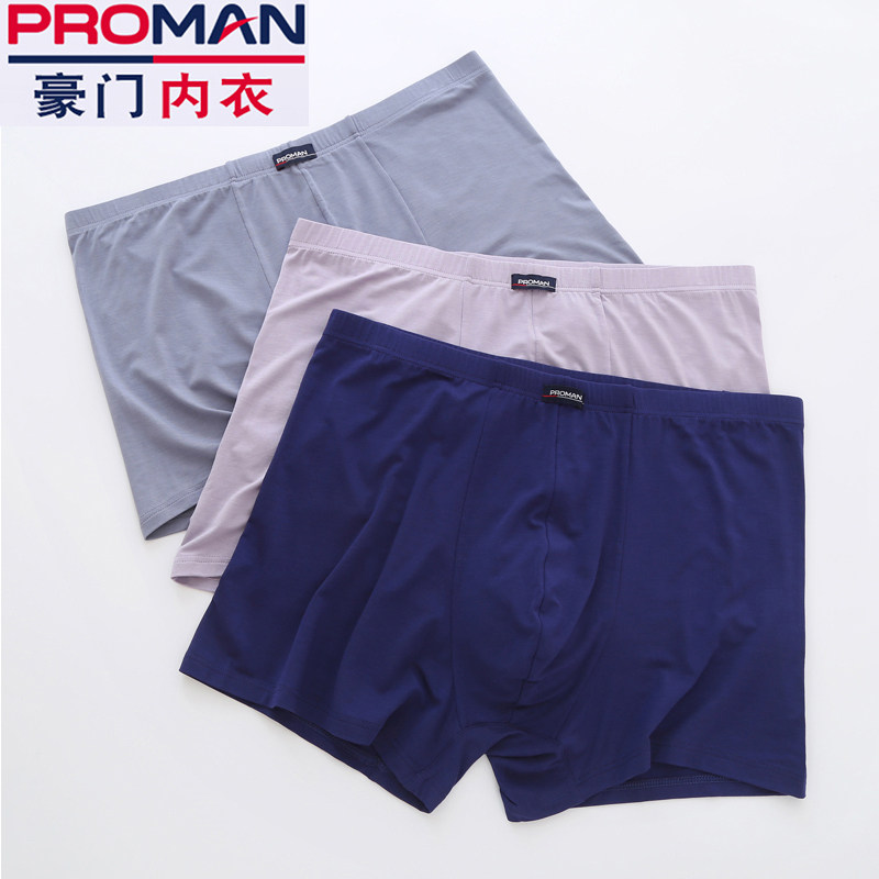 PROMAN豪门男士薄款透气平角内裤宽松青年中腰运动吸汗短裤纯色夏