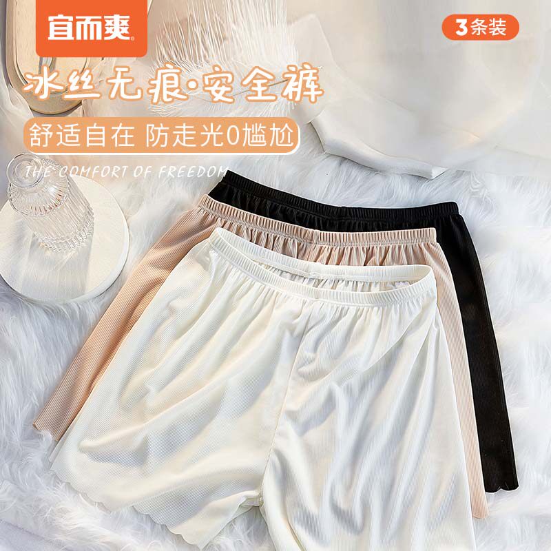 宜而爽安全裤女打底内裤夏防走光冰丝透气无痕短裤不卷边平角裤
