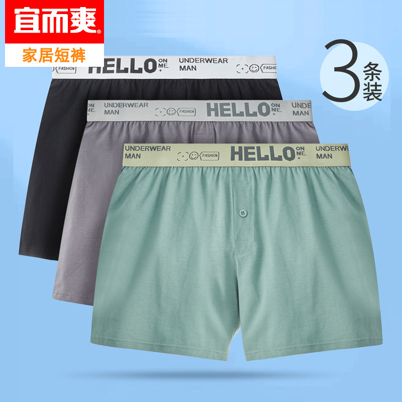 宜而爽棉质阿罗裤男士内裤青年男生宽松平角裤MAN四角短裤哈罗裤