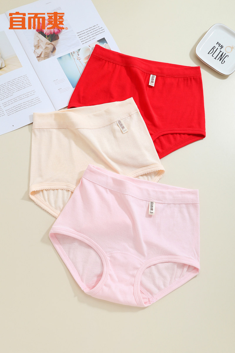 宜而爽女中高腰内裤胖妹大码本命年红纯棉透气吸湿罗纹三角短裤