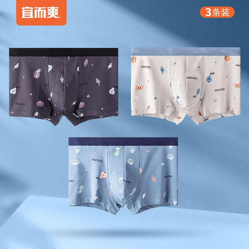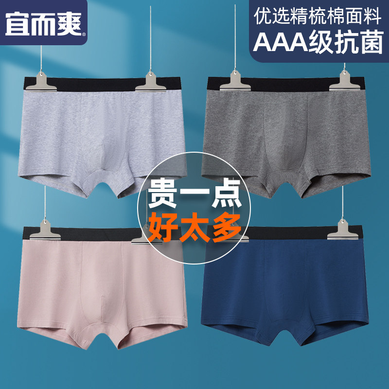 宜而爽内裤男纯棉抗菌大码裤头青年四角短裤运动吸汗男士平角裤