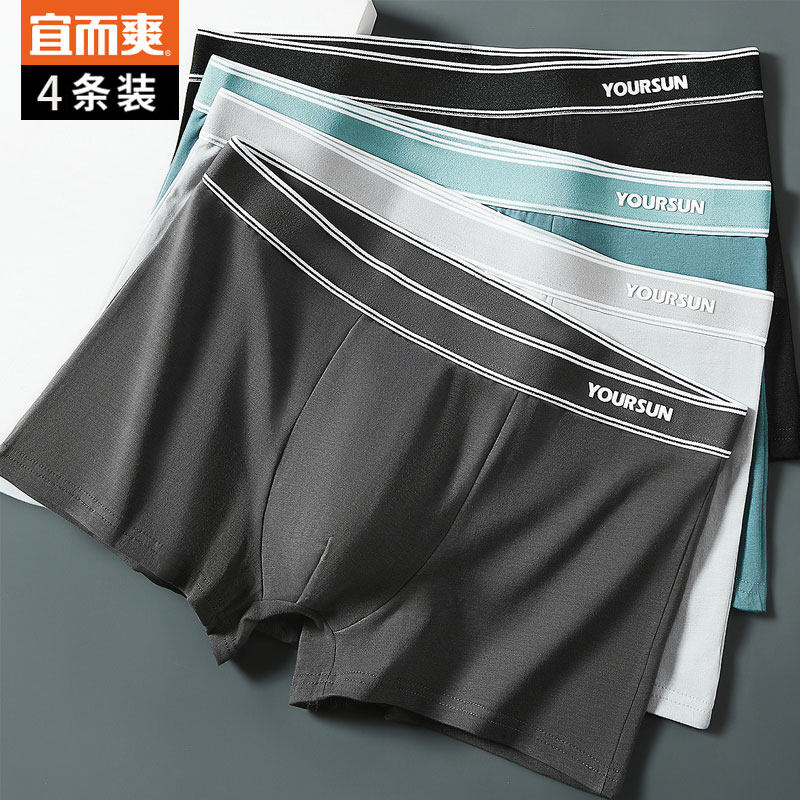 4条装宜而爽男士内裤四角裤棉氨弹力中青年内裤男平角裤短裤夏季