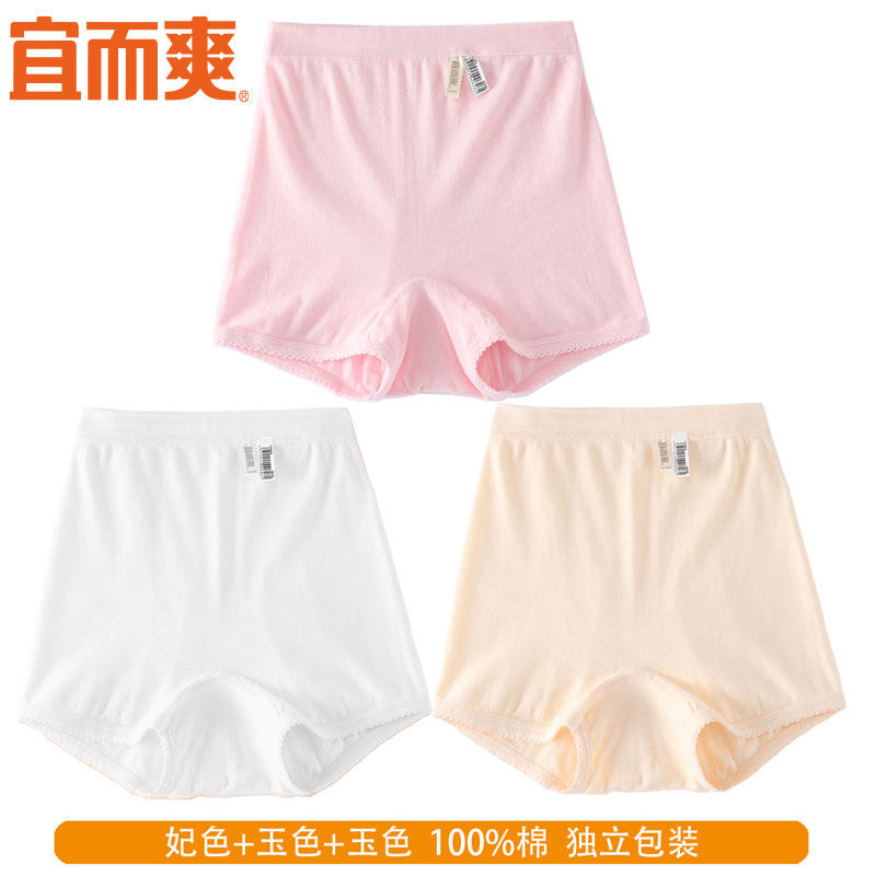 宜而爽内裤女纯棉白色高腰中老年四角安全短裤妈妈收腹女士平角裤