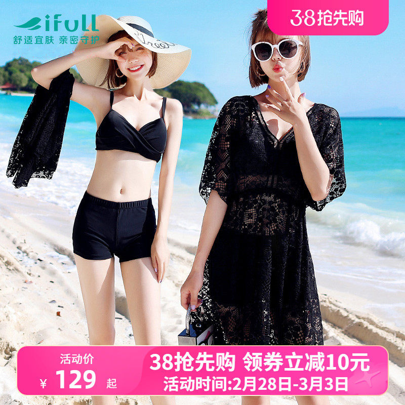 宜肤比基尼泳衣女ins风三件套韩国泡温泉小香风保守遮肚显瘦游泳