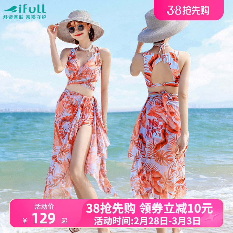宜肤泳衣女2023新款三件套遮肚显瘦性感比基尼分体海边度假泡温泉
