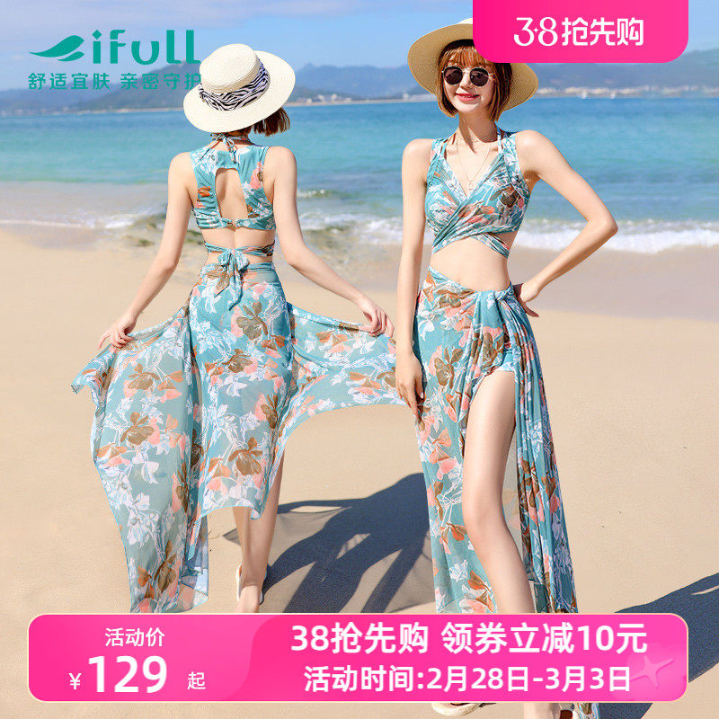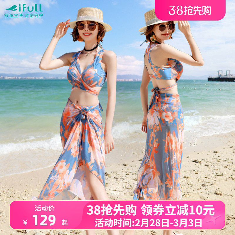 宜肤游泳衣女性感比基尼三件套夏2021年新款时尚显瘦海边温泉泳装