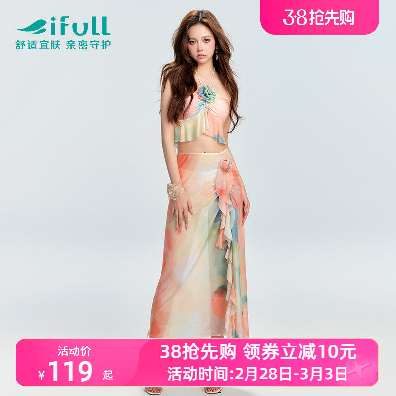 宜肤游泳衣女士分体比基尼罩衫2024年新款性感遮肚显瘦度假泡温泉