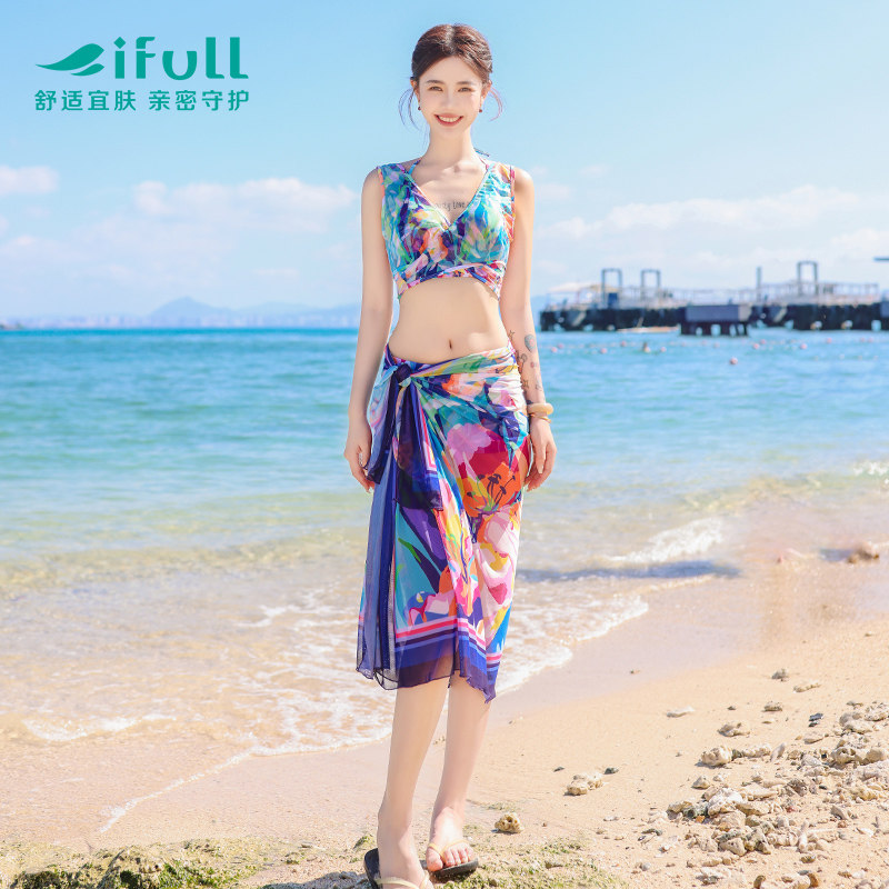 宜肤游泳衣女分体比基尼海边度假三件套2024新款性感遮肚显瘦泳衣