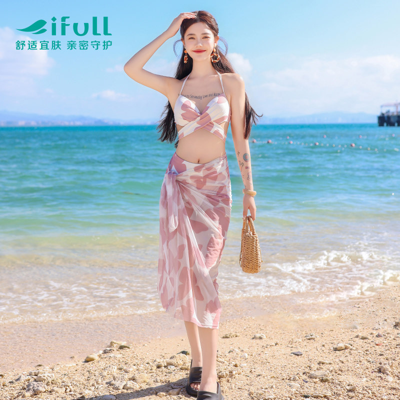 宜肤2024年新款比基尼泳装性感小胸聚拢泡温泉罩衫分体泳衣三件套