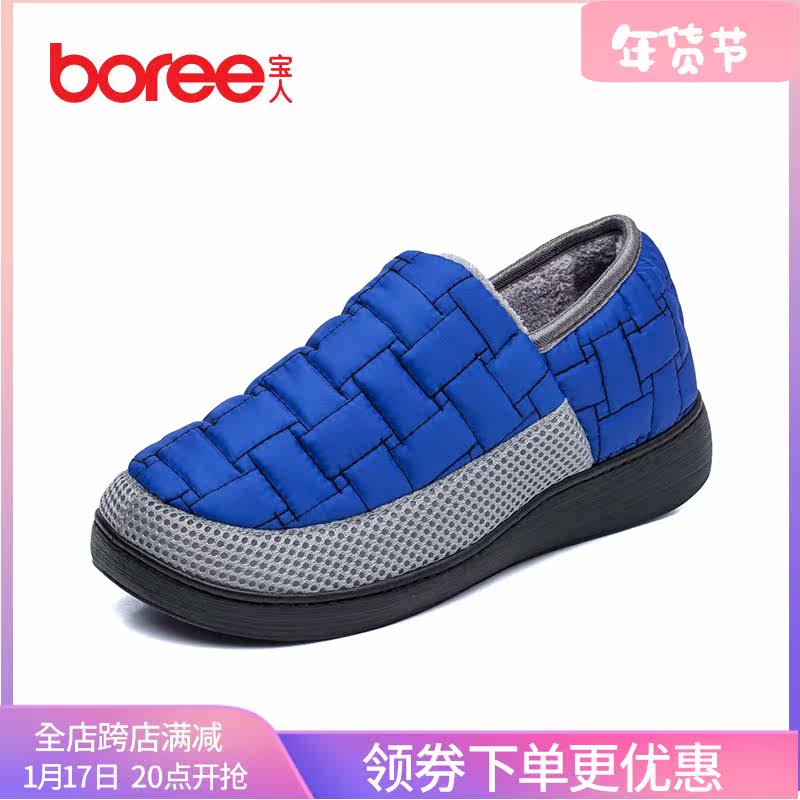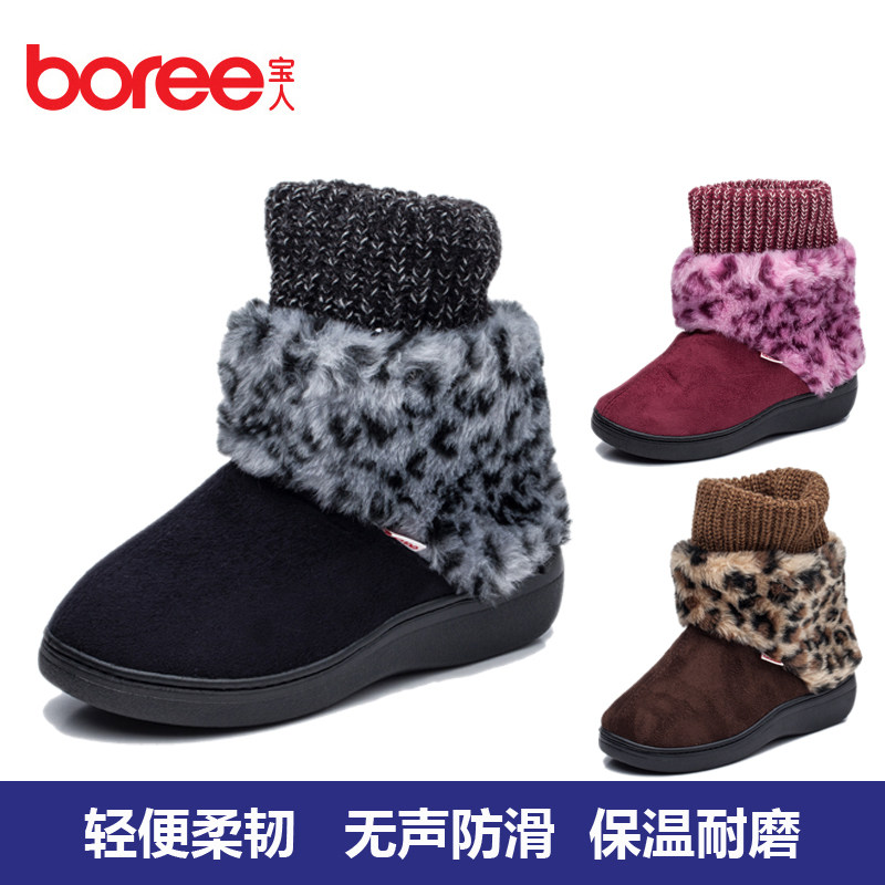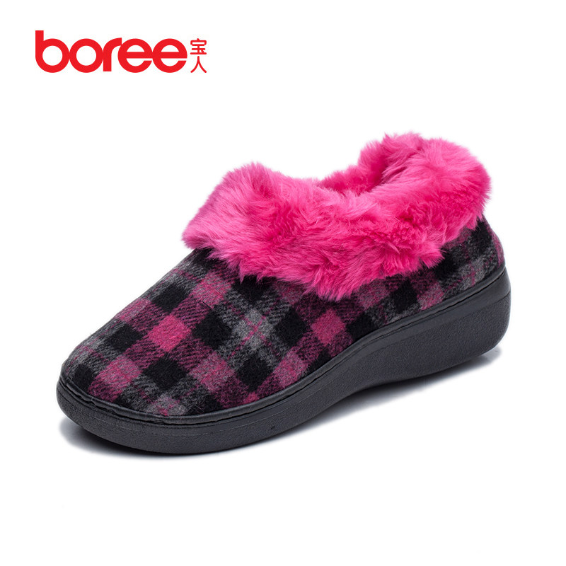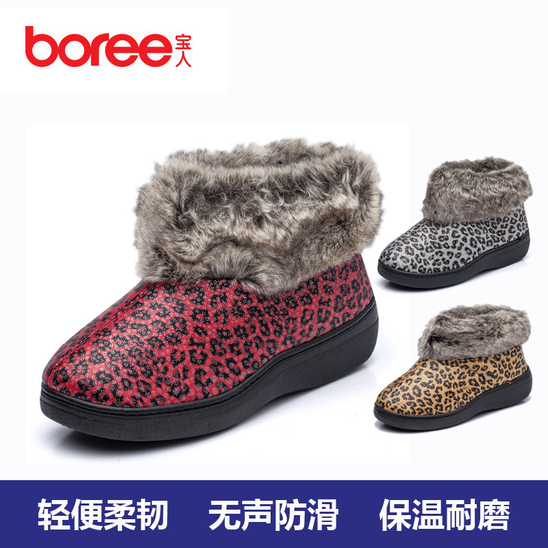 宝人秋冬女拖加绒包跟棉拖鞋中老人保暖防滑防水厚底家居拖鞋包邮