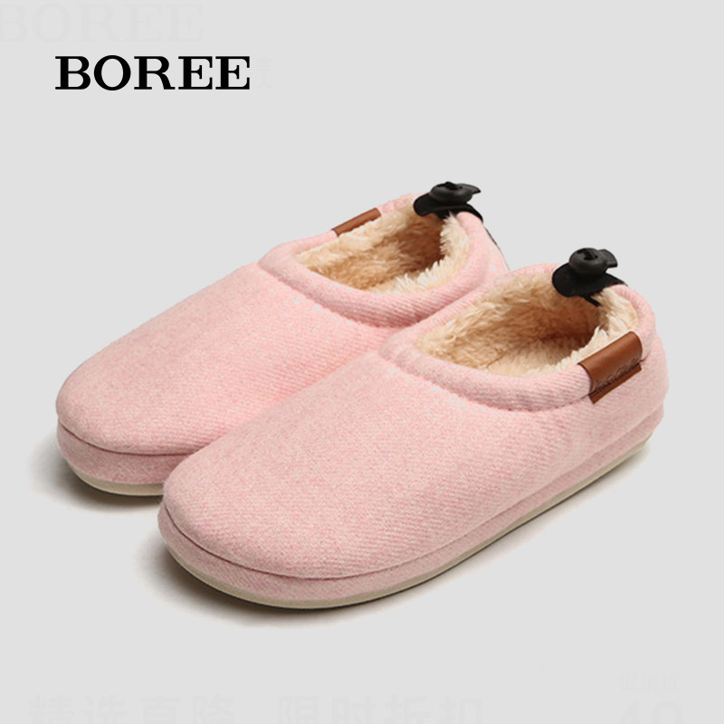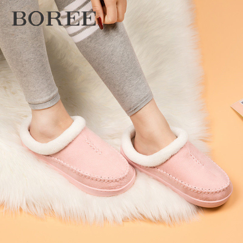 宝人棉拖鞋冬季卧室保暖加厚防滑家居室内情侣日式纯色毛毛棉鞋