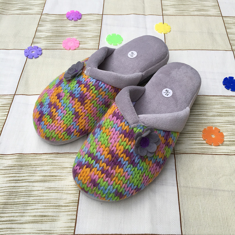 2021新款秋冬款细绒针织一脚蹬家居棉拖鞋加厚保暖耐磨防滑舒适鞋