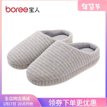 宝人包头棉拖鞋2023年新款针织保暖拖鞋防滑舒适条纹室内棉鞋