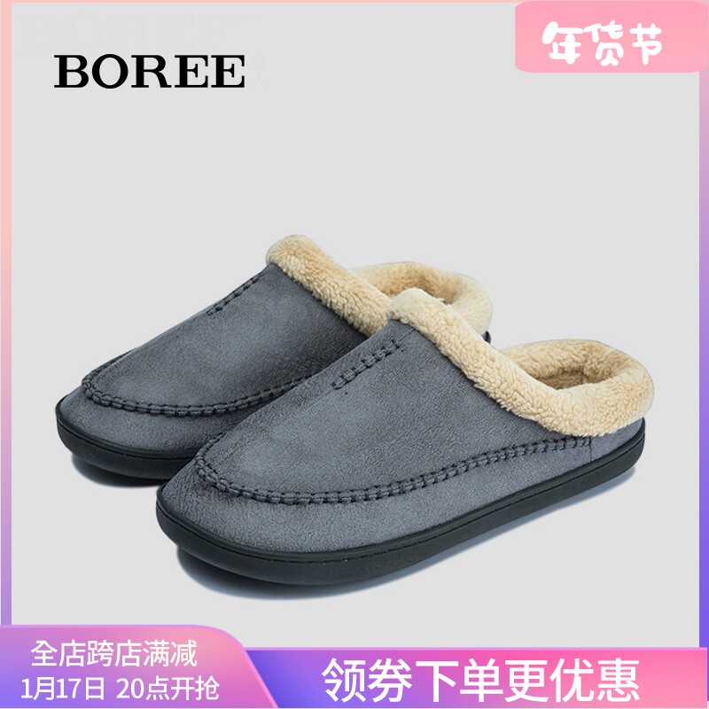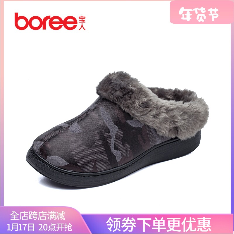 宝人冬季男保暖棉拖鞋中年男士大码厚底防滑室内棉鞋情侣棉拖