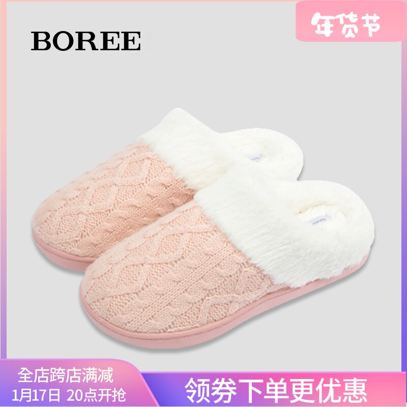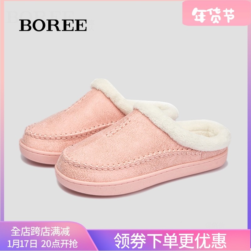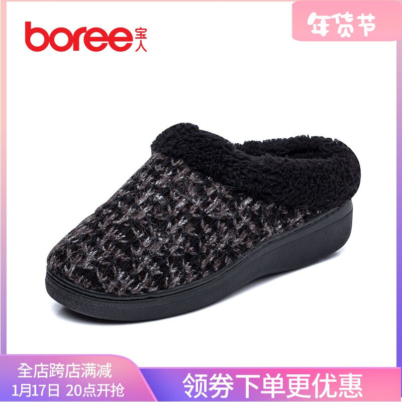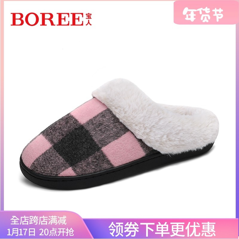 宝人冬季女棉拖鞋2023加绒保暖毛拖鞋居家室内拖鞋防滑加厚棉拖女