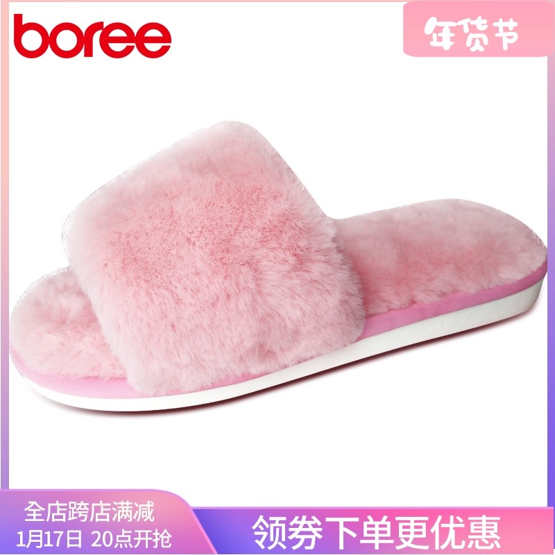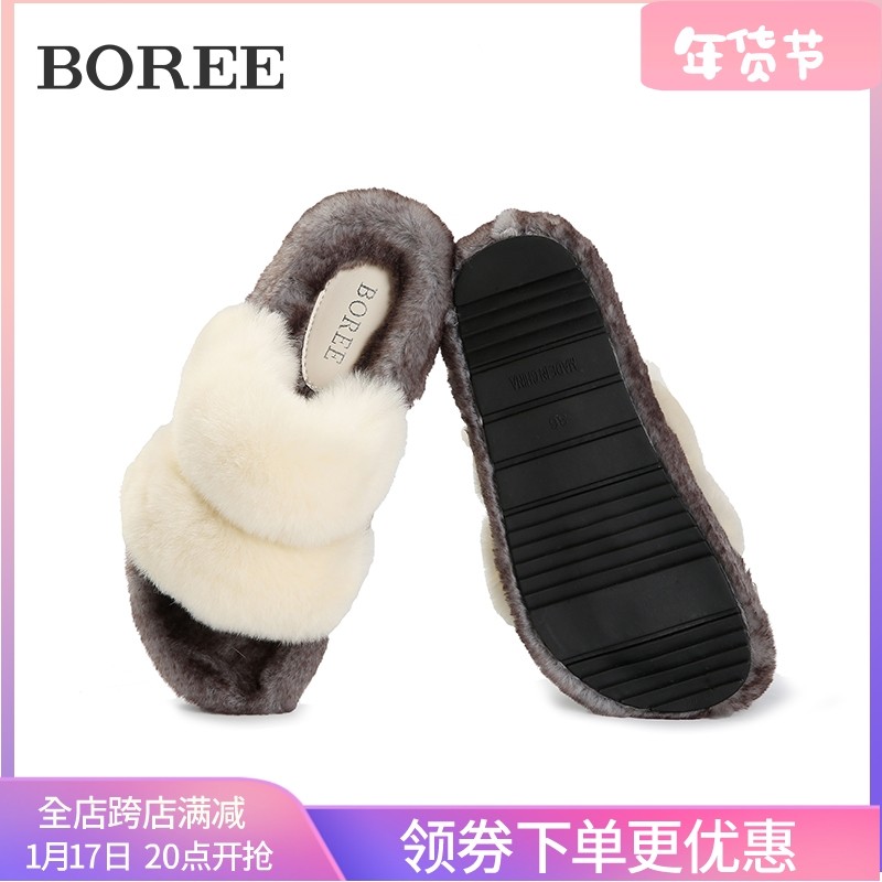 宝人毛毛拖鞋女2023年冬季新款舒适真皮毛绒拖防滑平底居家棉拖女