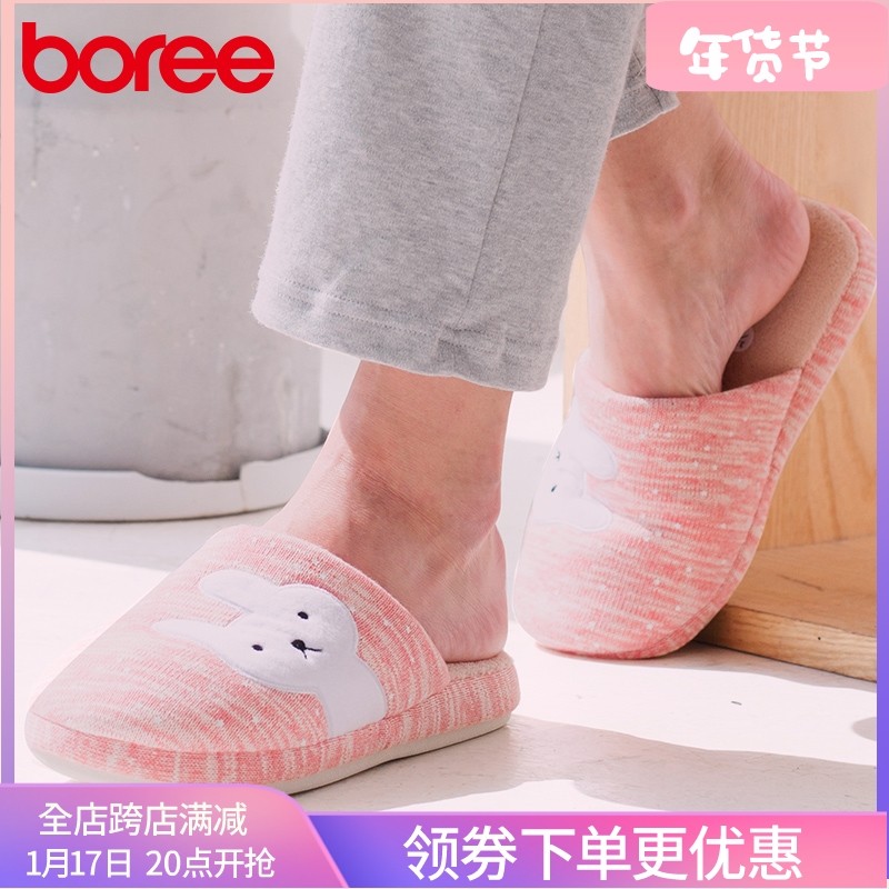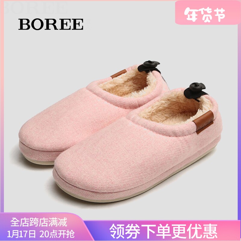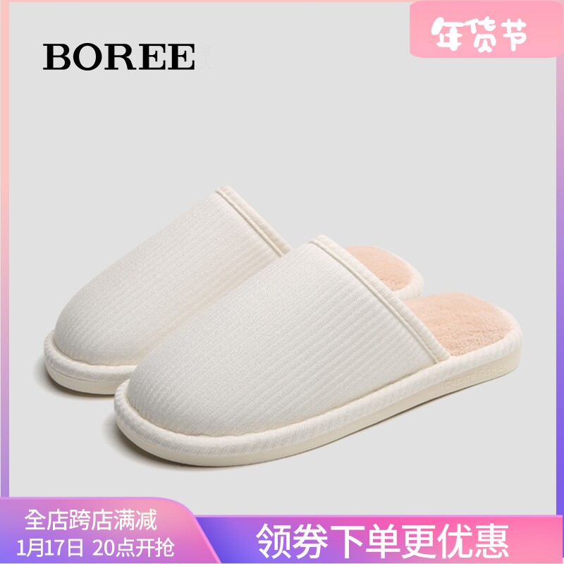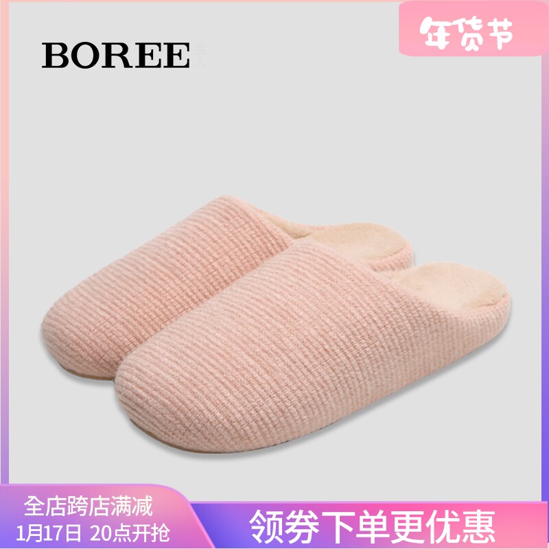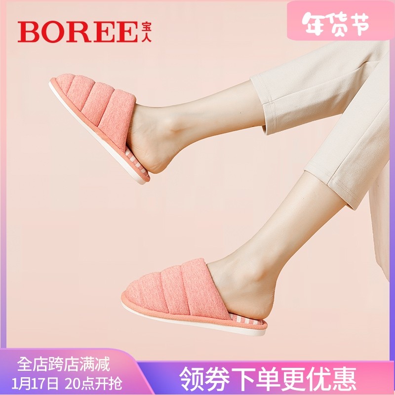 宝人棉拖鞋女日式拖鞋冬季保暖防滑家居室内情侣纯色拖鞋舒适棉鞋