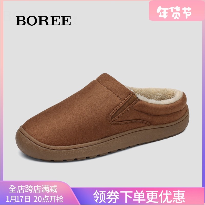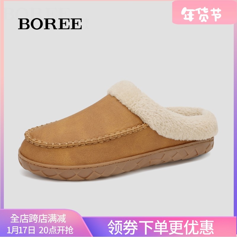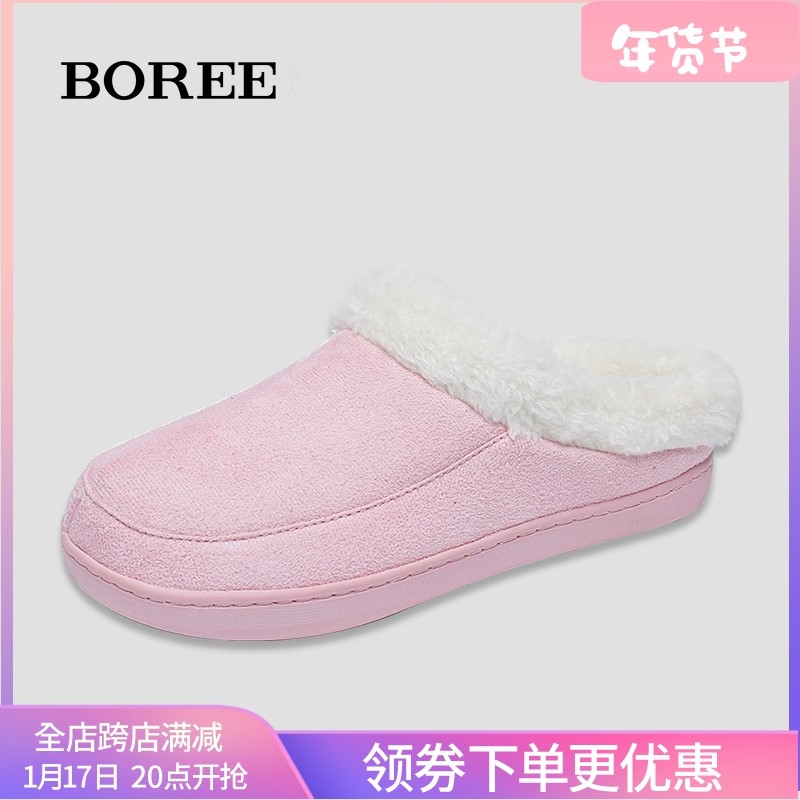宝人棉拖鞋女冬季包跟居家防滑绒面毛毛拖外穿加绒保暖中筒棉鞋