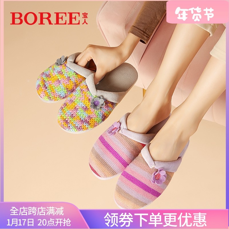 宝人棉拖鞋清仓女冬季全包跟厚底保暖防滑家居拖鞋女甜美中跟棉鞋