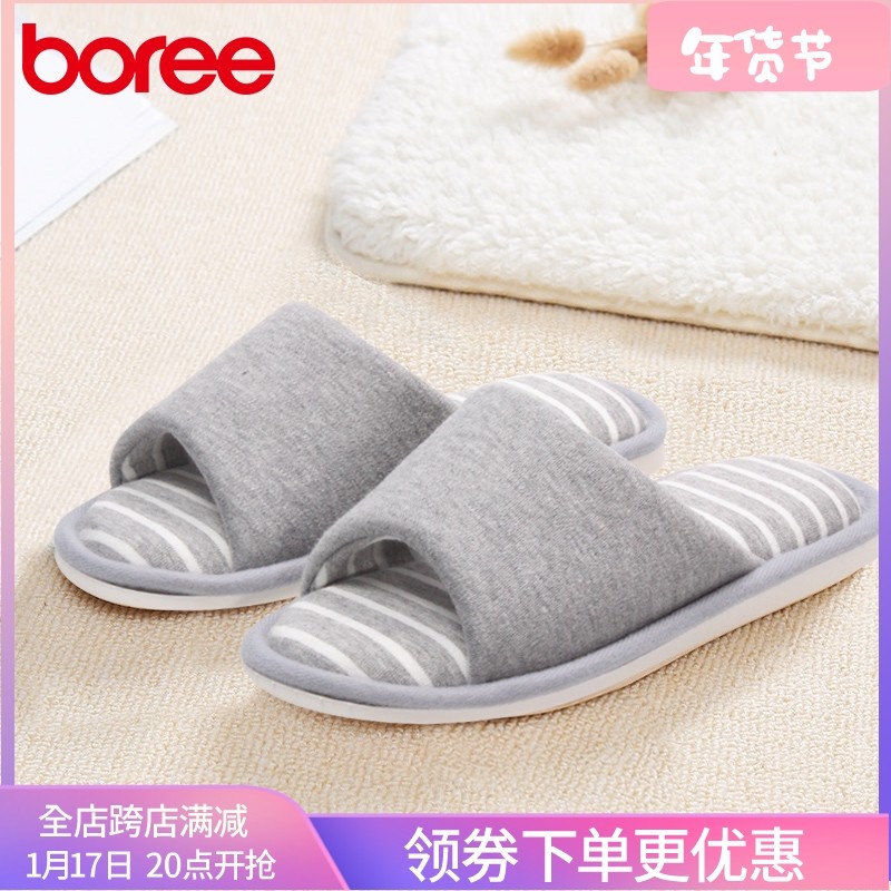 宝人条纹情侣棉拖鞋女室内防滑居家舒适拖鞋露趾一字拖鞋男女鞋