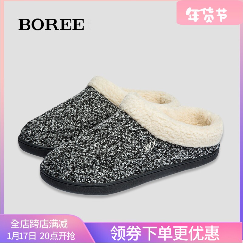 宝人冬季棉拖鞋男室内家居鞋家用防滑加绒保暖外穿大码棉鞋女拖鞋