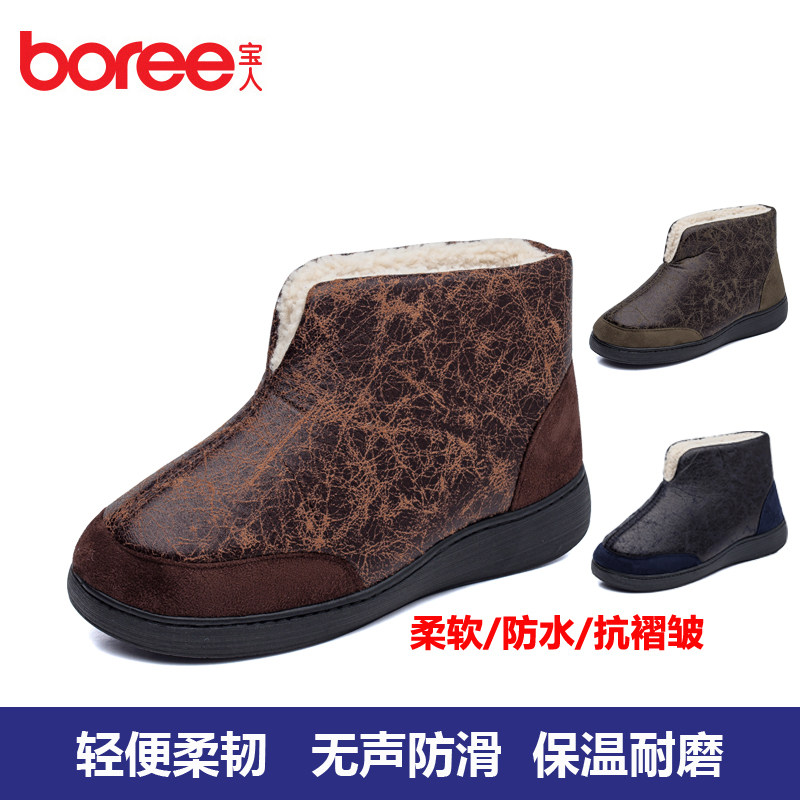 宝人冬季中老年男士包跟棉拖鞋防滑防水厚底保暖老人棉鞋居家棉拖